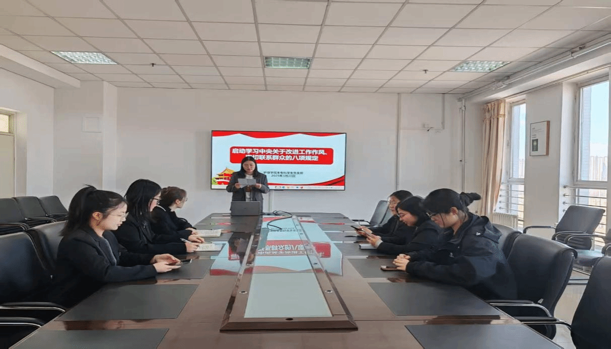 2025年3月28日,beat365官方网站本专科学生党支部召开中央八项规定学习教育启动部署会,深入学习贯彻习近平总书记关于深入贯彻中央八项规定精神学习教育的重要讲话和重要指示精神,传达beat365官方网站建设工作领导小组会议精神,研究贯彻落实工作,启动学习教育。会议由支部书记倪秀茹主持,支部委员及学生党员参加会议。