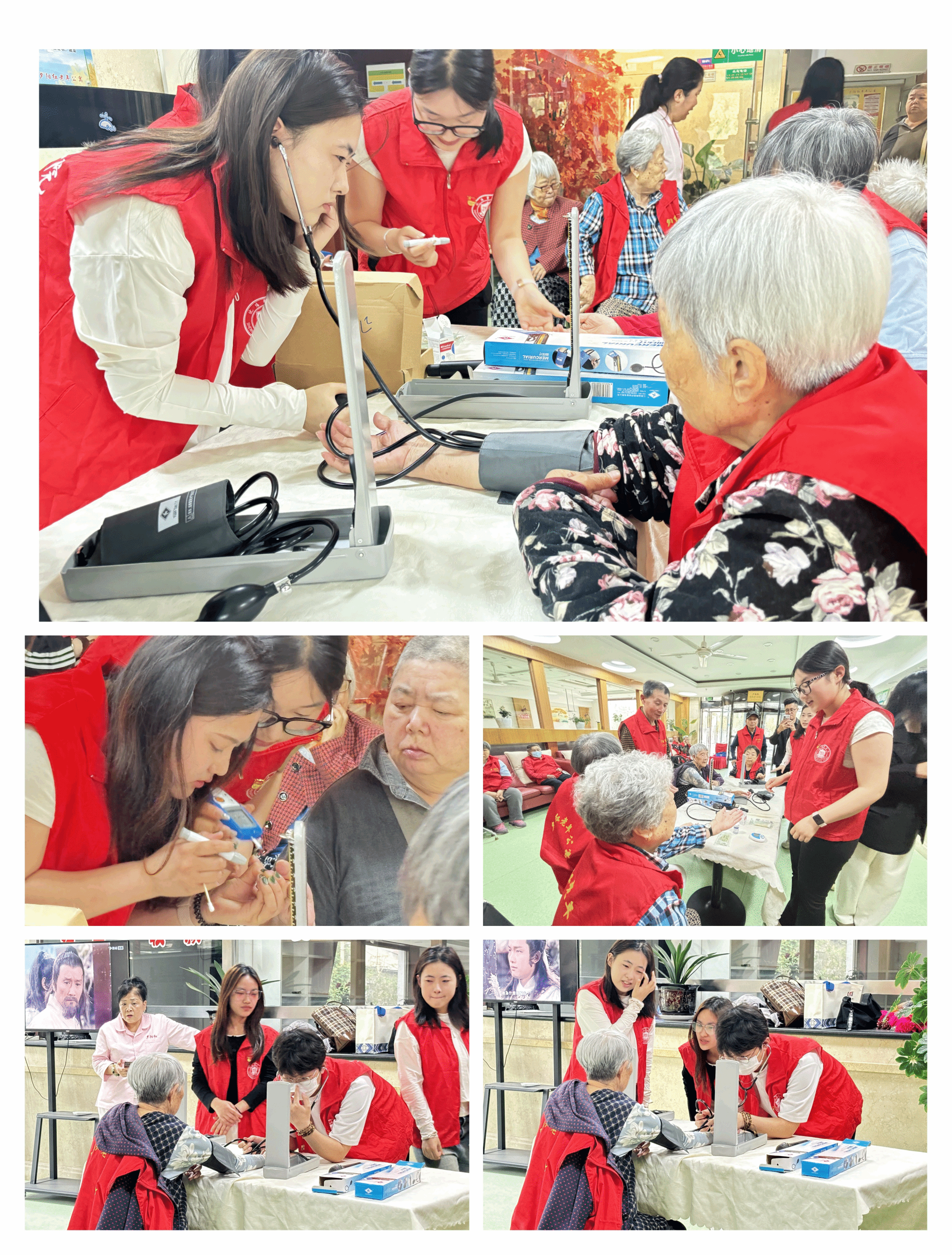 此外,beat365官方网站暖夕社团的成员们还为老人们测量血压、测量血糖,用实际行动传递关爱。
