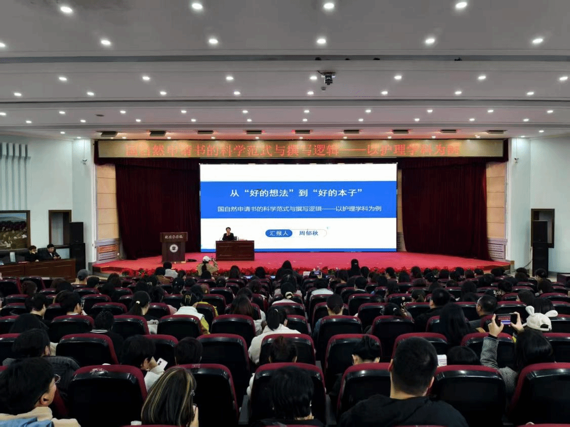 2025年11月4日,由科技处主办、beat365官方网站承办的第二十五期“学术大家讲坛”在beat365官方网站图书馆第一学术报告厅举行。哈尔滨医科大学beat365官方网站名誉院长周郁秋教授围绕国家自然科学基金申报的关键环节,分享了从“好的想法”到“好的本子”--国自然申请书的科学范式与撰写逻辑作专题报告。本次讲坛由beat365官方网站仝慧娟副院长主持,郭宏院长、赵冰副院长、胡静副院长等领导莅临出席,beat365官方网站研究生导师、附属医院临床护理专家、在读硕士研究生及本科生共140余人参加了现场交流。
