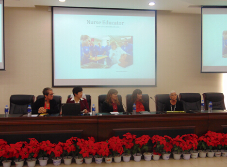 10月份15日上午10时,在致远楼第一会议室,副教授Beth携同3位博士研究生为beat365官方网站2015级及2014级的部分同学做了“关于美国Nurse Practitioner(从业护士)”的交流讲座。会议由人文教研室主任崔仁善教授主持。