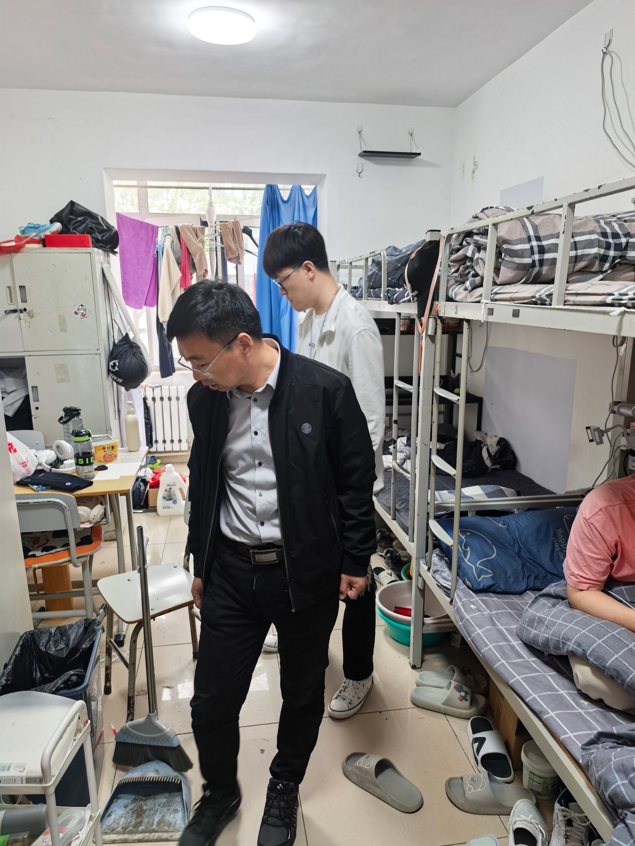 安全教育结束后,叶琳书记和魏家李院长带领全体辅导员深入学生宿舍,开展了一场细致入微的安全大排查。在排查过程中,辅导员们重点检查了宿舍的用电安全、消防设施、卫生状况等方面。对于用电安全,仔细查看是否存在私拉乱接电线、使用大功率违规电器等现象,一旦发现,立即要求同学进行整改,并向同学们耐心解释违规用电的危害。在消防设施检查中,确认灭火器、消火栓等设备是否完好有效,疏散通道是否畅通无阻。同时,辅导员们还关注了宿舍的卫生情况,提醒同学们要保持宿舍整洁,营造良好的生活环境。对于排查中发现的问题,辅导员们进行了详细记录,并现场与同学们沟通,提出整改意见和期限,确保安全隐患得到及时消除。