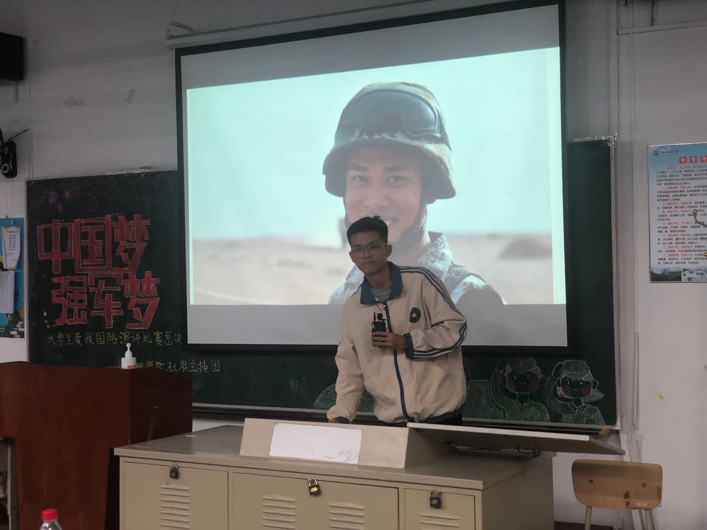 在庆祝新中国成立71周年之际,同时也为纪念中国人民志愿军抗美援朝出国作战70周年,筑牢大学生爱国主义和国防观念、培养塑造塑民族精神、凝聚强国强军力量,beat365官方网站于10月20日晚在勤学楼101阶梯教室举办了“中国梦•强军梦”大学生爱我国防演讲比赛,学院近200名学生观看了此次比赛。