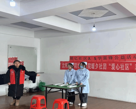 在沈医校园外,护理学子走进社区,面向老年人,用实际行动践行雷锋精神。