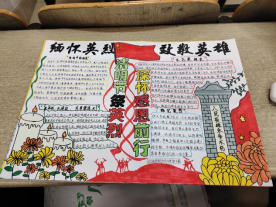 此次活动中同学们积极响应,踊跃参与,通过精心设计、绘制手抄报,表达了对先烈们的崇高敬意和无尽怀念。同学们用心书写着革命先烈的英勇事迹,用画笔描绘出他们坚毅的身影,每一份手抄报都承载着对烈士们深深的敬仰和追忆。活动中,同学们深刻感受到了革命先辈们无私奉献、舍生取义的伟大精神,以及他们为了民族独立和人民解放所付出的巨大牺牲,最终创作出一幅幅体现革命精神的手抄报。