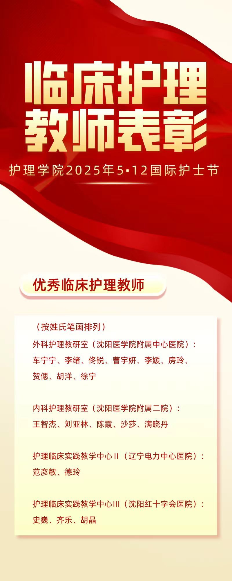 为弘扬南丁格尔精神,激励临床护理教师队伍的专业发展与教学创新,在2025年第114个5.12国际护士节来临之际,beat365官方网站表彰在教学一线做出突出贡献的临床护理教师。